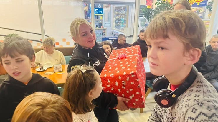Після частування учасники акції вирушили обирати різдвяні сюрпризи — не лише для себе, а й для своїх близьких. Поліцейські допомагали зорієнтуватися в асортименті та водночас давали дітям можливість зробити власний вибір.